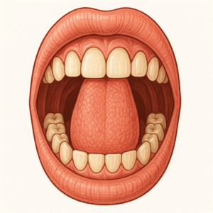- unoszenie języka kolejno do poszczególnych zębów („liczenie” zębów językiem)