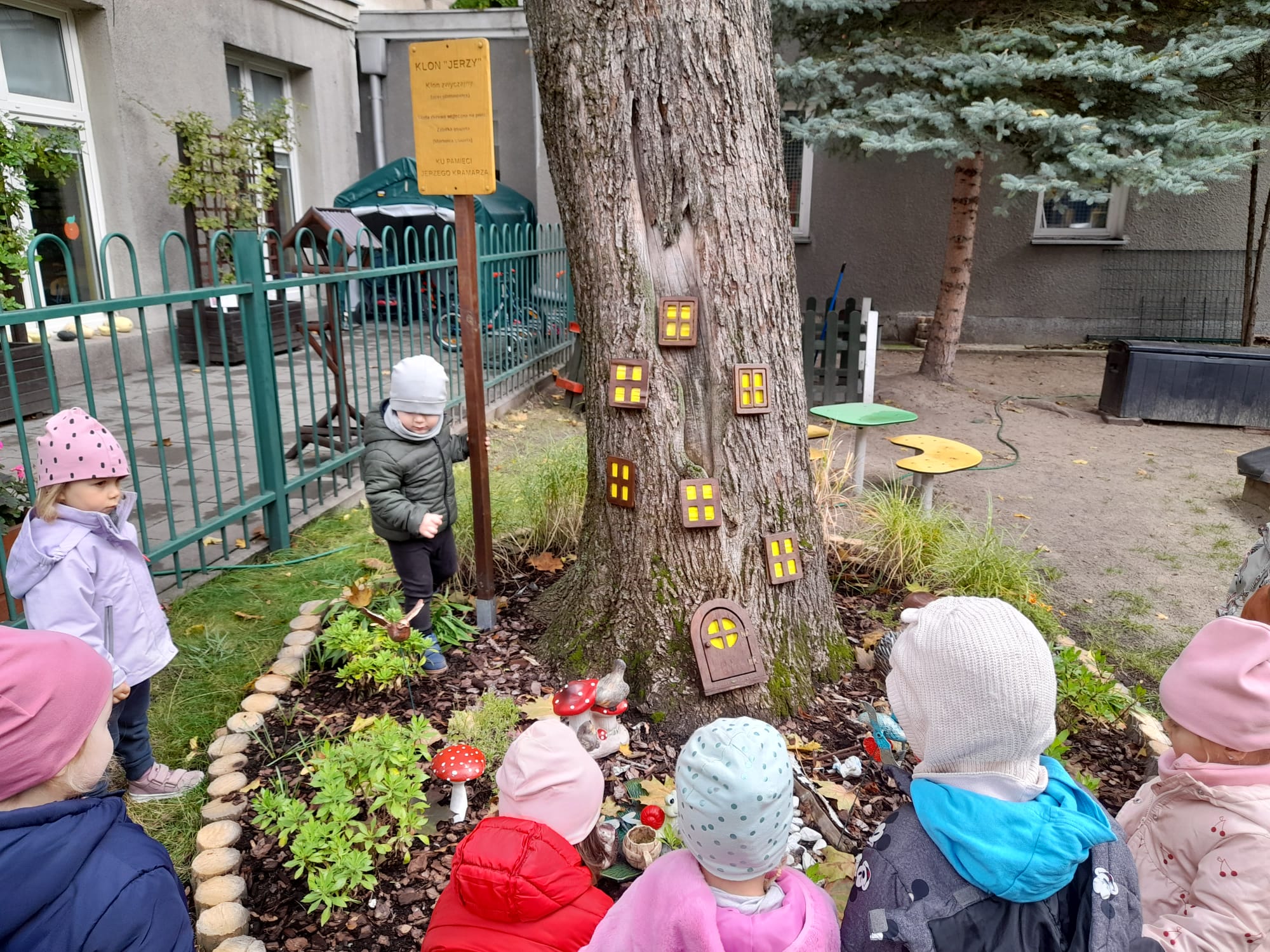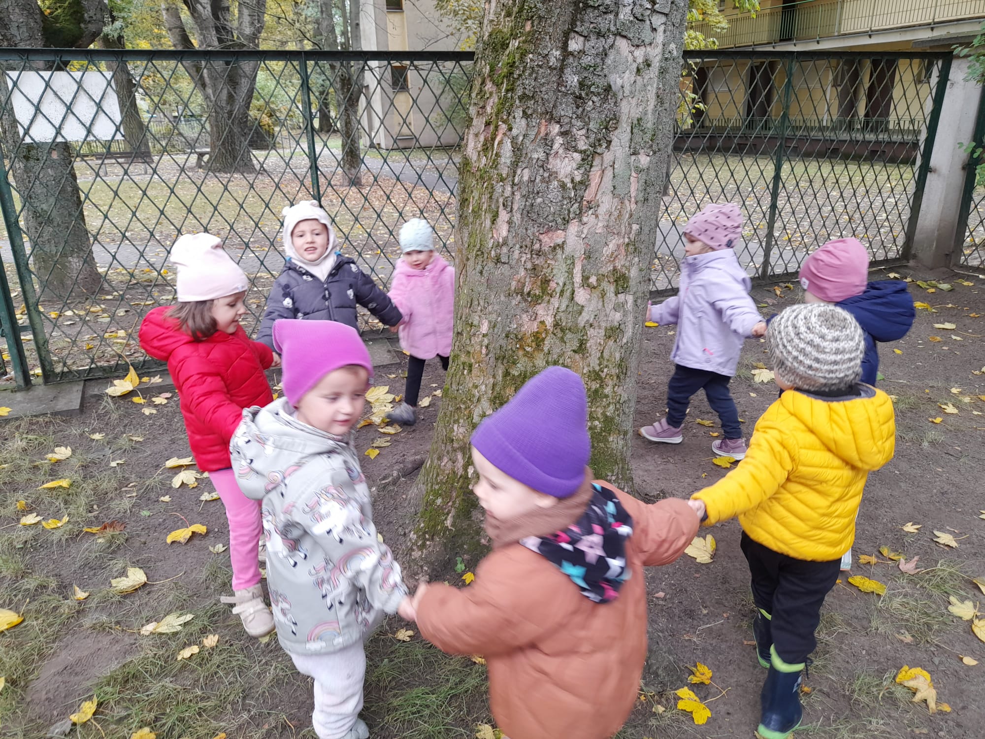 Maluszki świętowały Międzynarodowy Dzień Drzewa w ogrodzie przedszkolnym. Zasadziły sadzonkę orzecha, zatańczyły radosny taniec wokół drzewa, przytulały się do drzew i wąchały ich zapach. To był dzień pełen radości, natury i ekologicznych wrażeń.