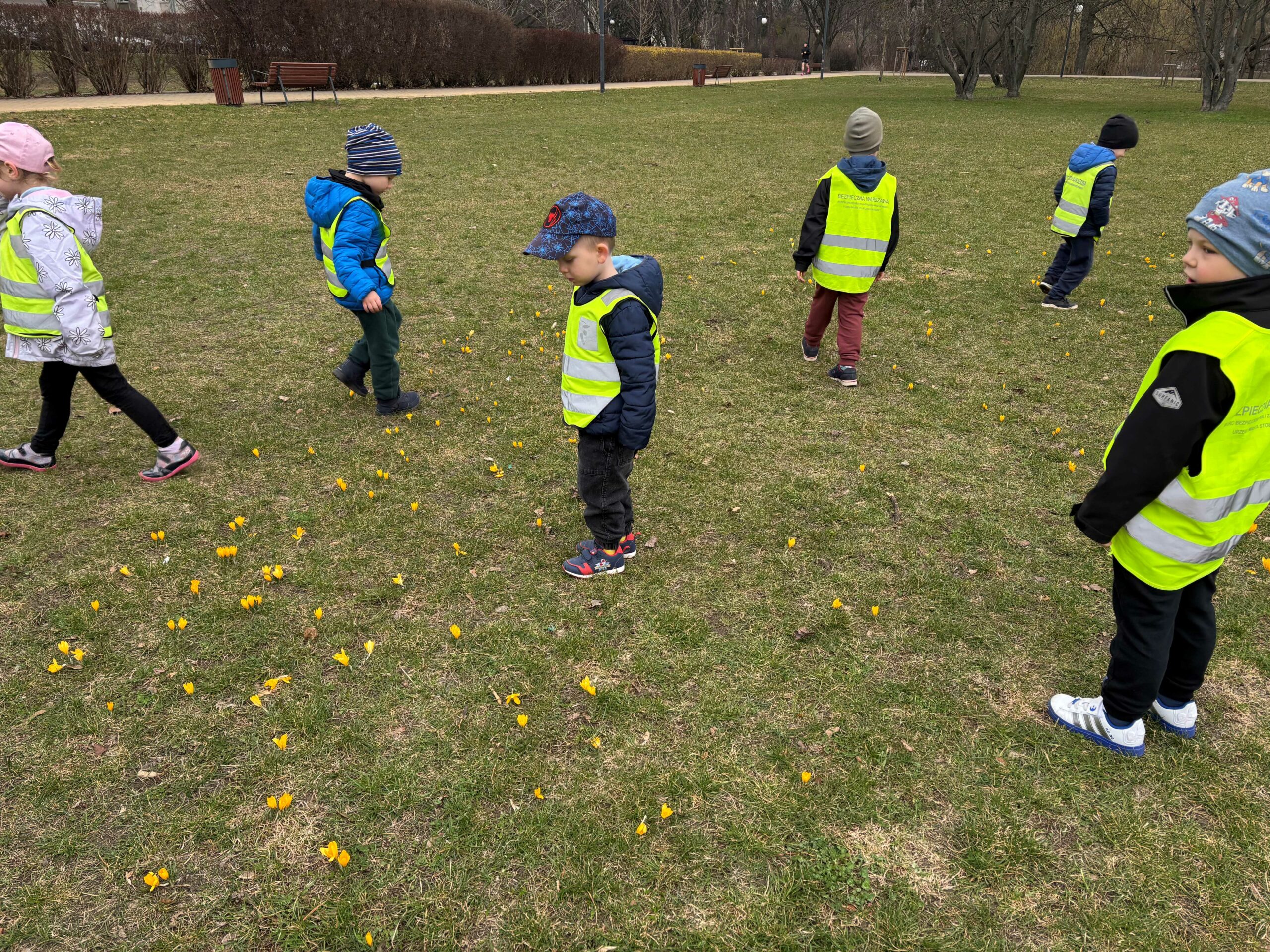 W piątek 20 marca dzieci z grupy II wybrały się do Parku Moczydło. Przedszkolaki sprawdzały, czy przyszła już wiosna. I udało się nam znaleźć dowody na jej pojawienie się. Na drzewach są już pączki, rosną kolorowe kwiatki, słychać śpiew ptaków. Okazało się, że nie tylko my wpadliśmy na pomysł, by powitać wiosnę w parku. Po drodze spotkaliśmy dzieci z innych przedszkoli i szkół. I trudno się temu dziwić, bo miło jest spędzać czas wśród pięknej wiosennej przyrody.