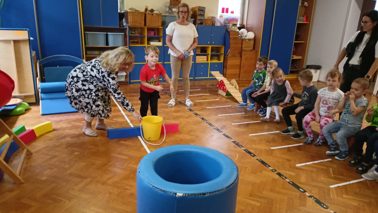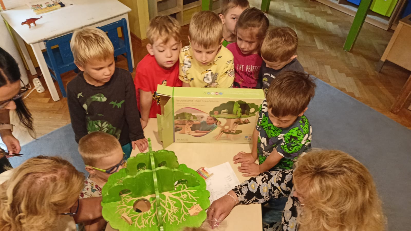 W przedszkolu ukrytych było 10 kopert z różnymi zadaniami np. liczyliśmy od 10 do 0, rozpoznawaliśmy pierwsze litery naszych imion, śpiewaliśmy piosenkę, przechodziliśmy przez tor przeszkód i rzucaliśmy do celu. Okazało się, że niespodzianka ukryta jest … w naszej sali. A jest nią drewniana pomoc edukacyjna „Drzewo i jego mieszkańcy”.Na dokładkę były jeszcze naklejki do wyboru. Potwierdziło się,że Nasze Starszaki to Super Przedszkolaki!