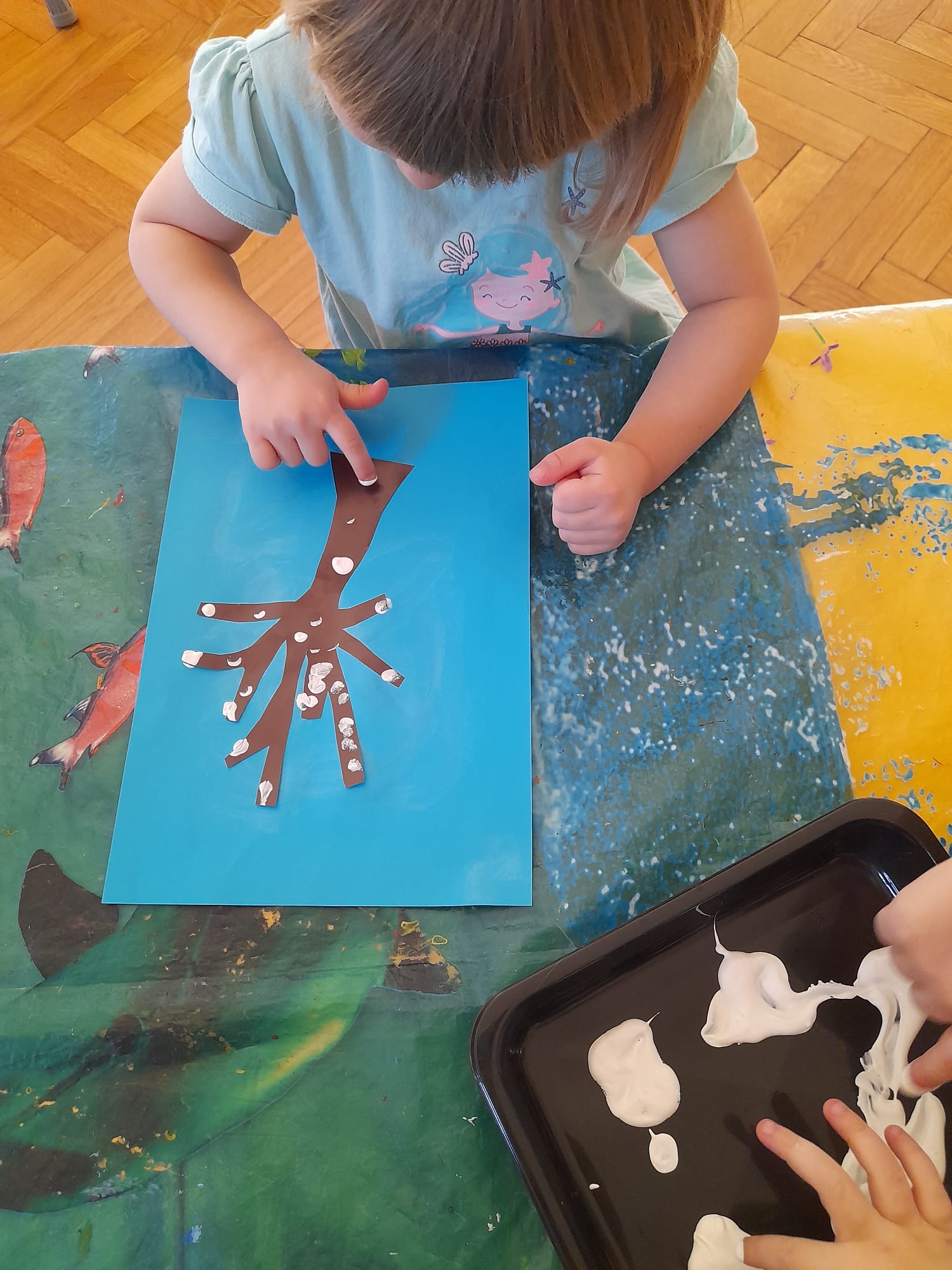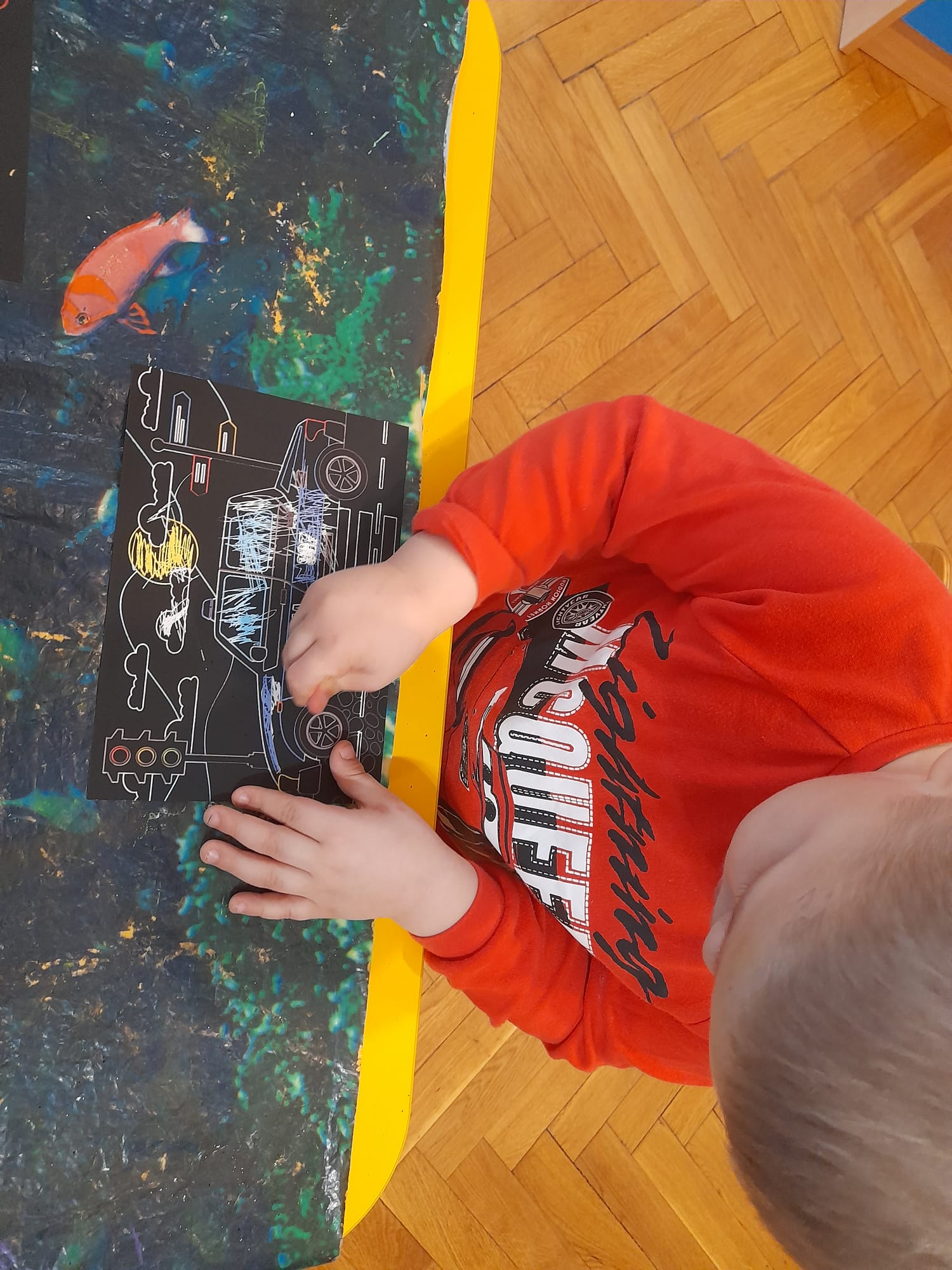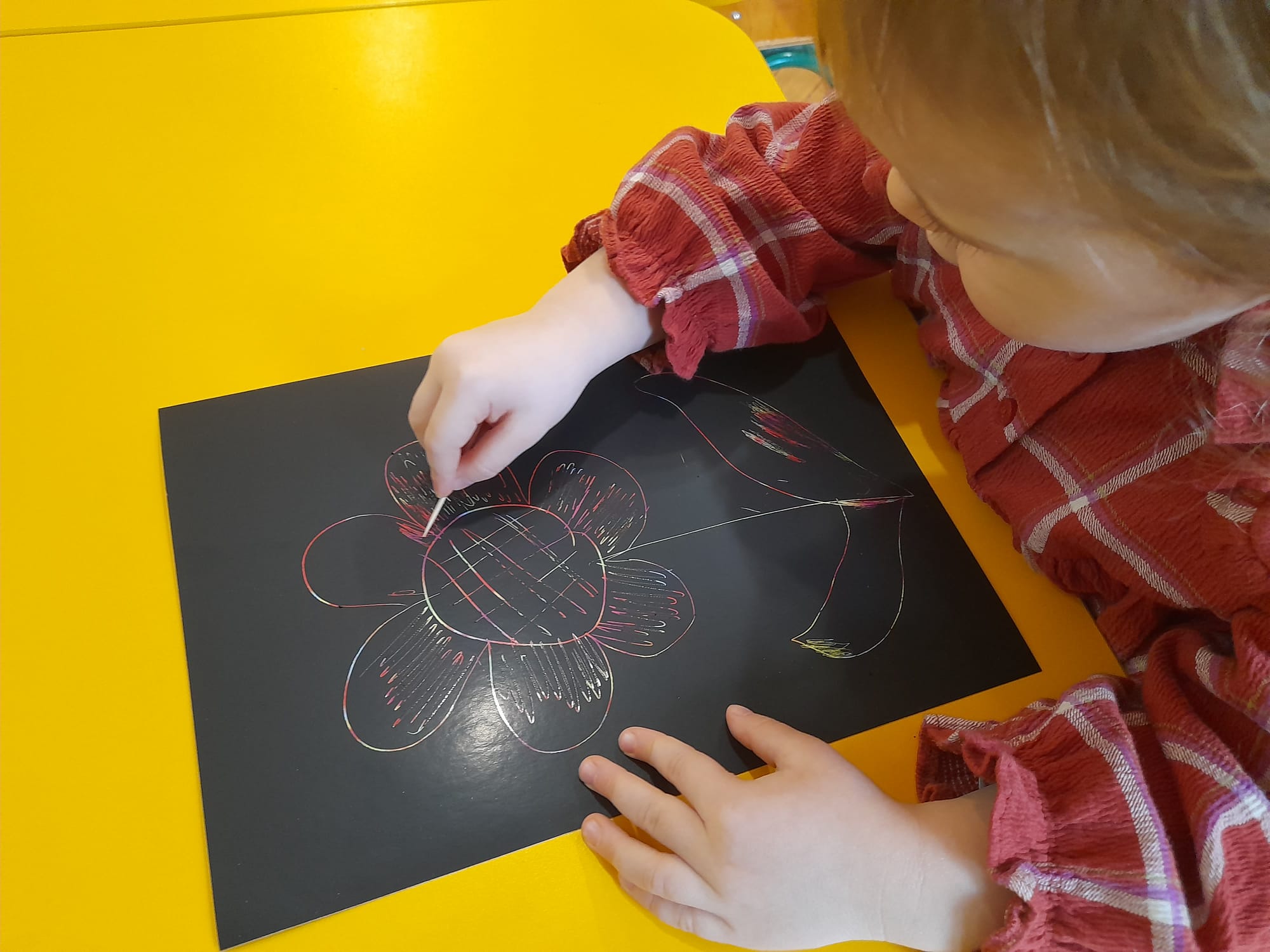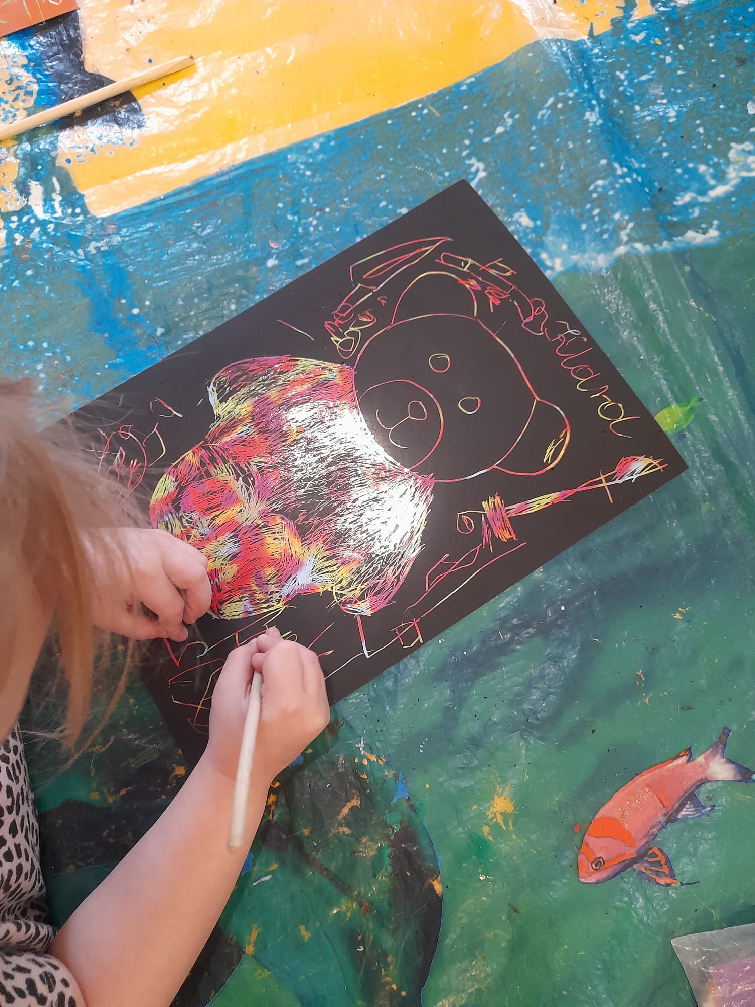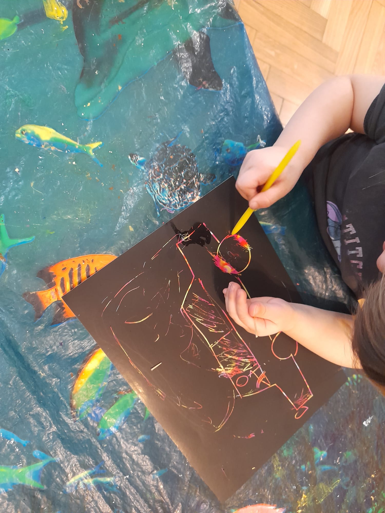 W grupie Maluszków nie ma czasu na nudę, nieustannie tworzą pomysłowe arcydzieła . Tym razem – w Kąciku Kreatywności- poznały nową technikę plastyczną- Wydrapywankę. Dzieci z ogromnym zaciekawieniem i skupieniem odkrywały kolorowe wzory ukryte pod czarną warstwą. Następnie tworzyły zimowe obrazki techniką paluszkową. Działania te sprawiły Małym Artystom wiele radości i pozwoliły na swobodną ekspresję twórczą:)