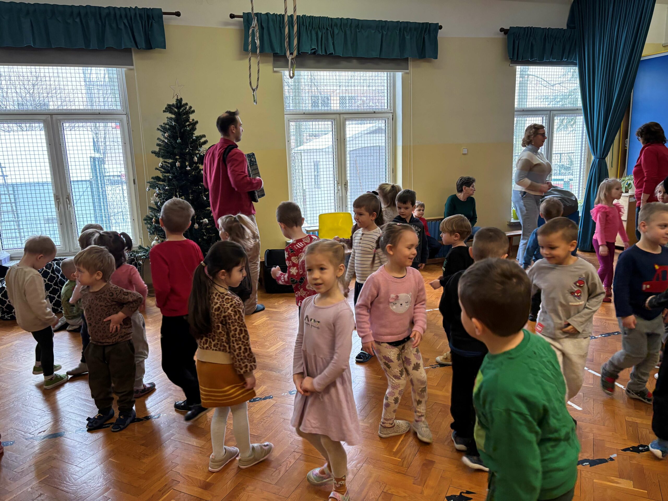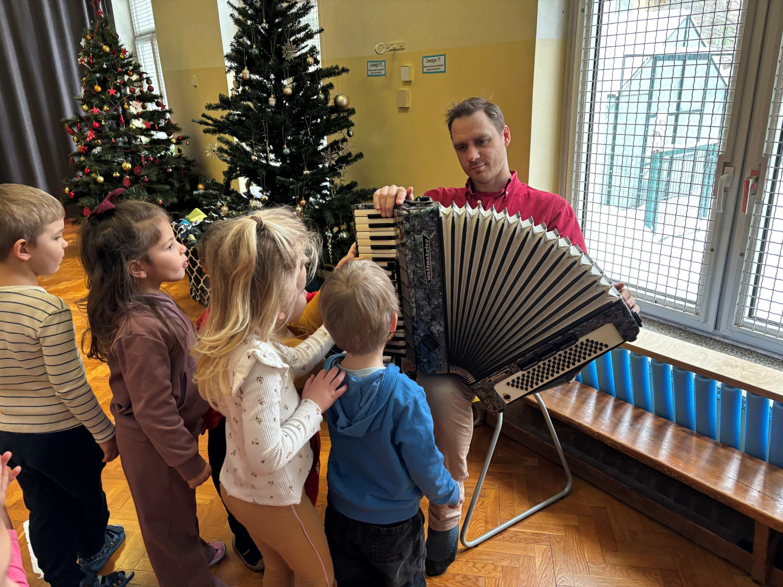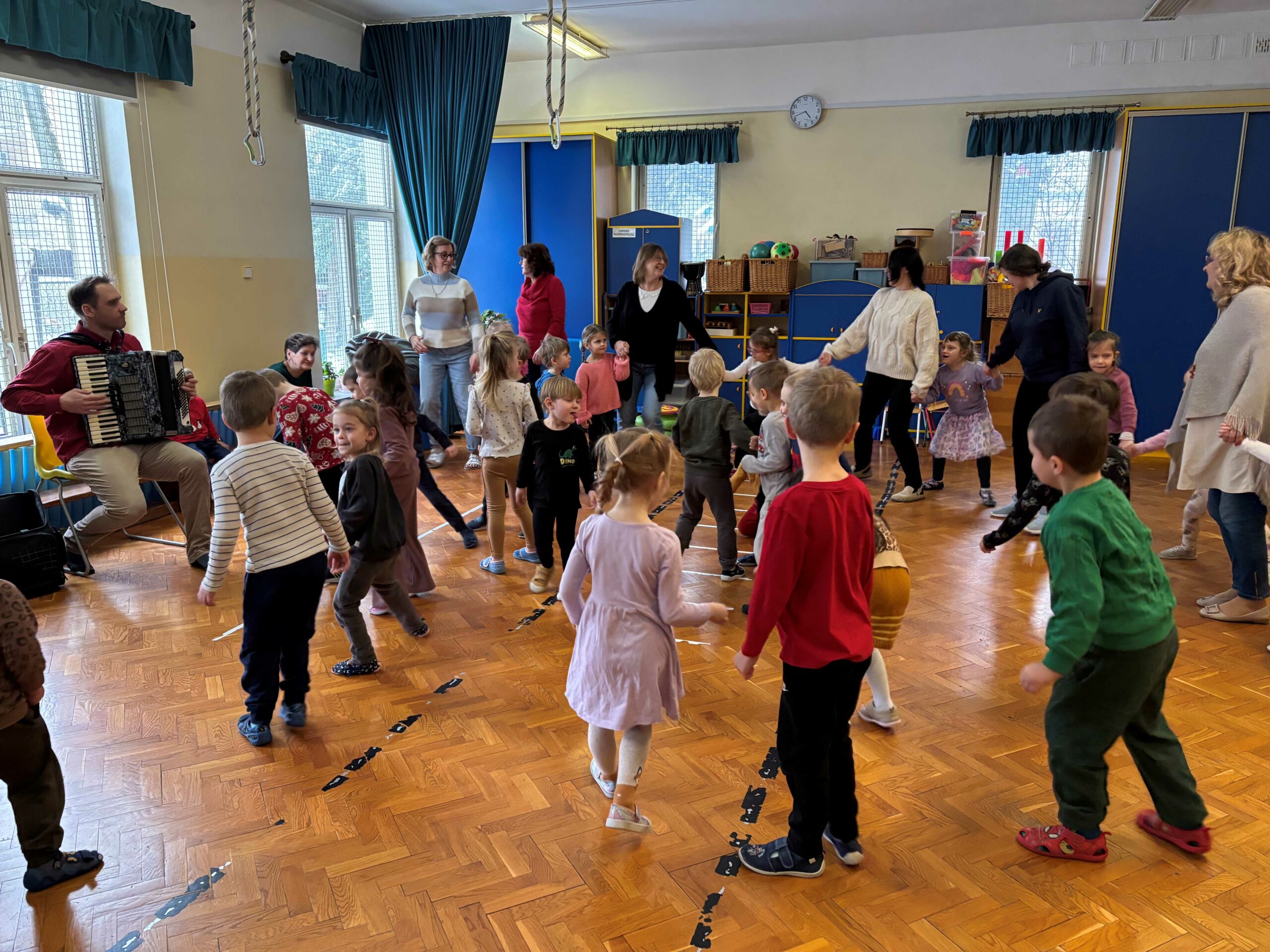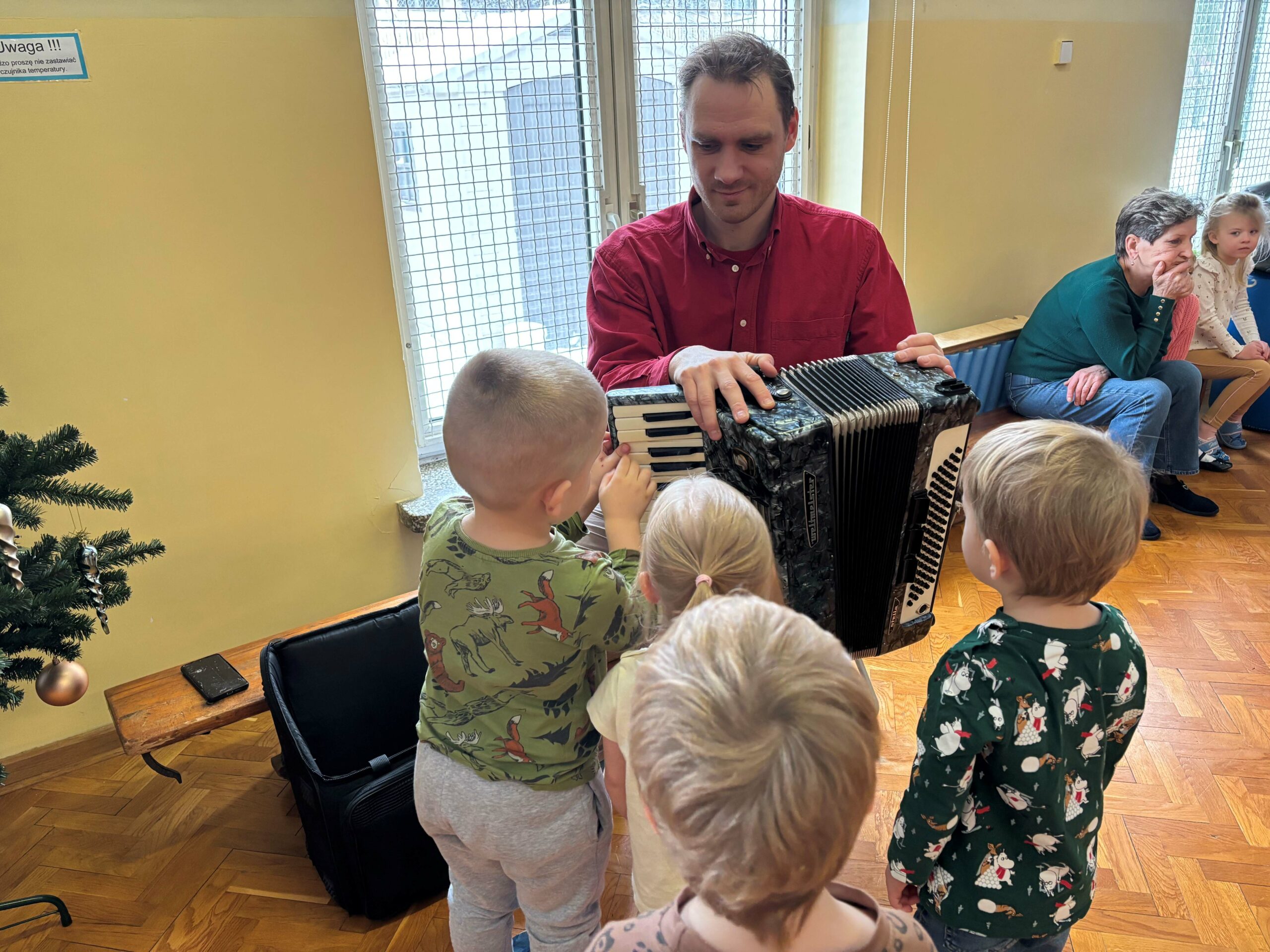 W środę 14 stycznia w naszym przedszkolu odbył się kolejny koncert edukacyjny z cyklu „Poznajemy instrumenty”. Tym razem dzieci miały okazję poznać bliżej akordeon. Sympatyczny pan opowiedział nam krótko, z jakich elementów składa się ten instrument i jak wydobywają się z niego dźwięki. Potem był koncert pełen wesołej zabawy i tańca. Żywiołowa muzyka bardzo spodobała się dzieciom. Na koniec każdy przedszkolak mógł sam sprawdzić, jak gra się na akordeonie. To było inspirujące spotkanie ze sztuką, która pozwala wyrażać emocje, rozwija wrażliwość i kreatywność.