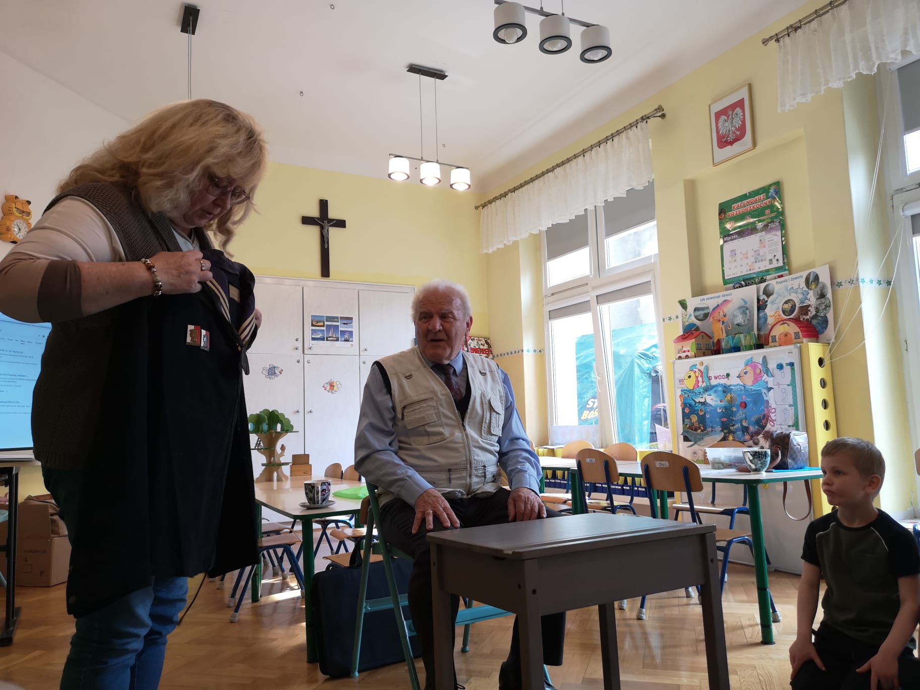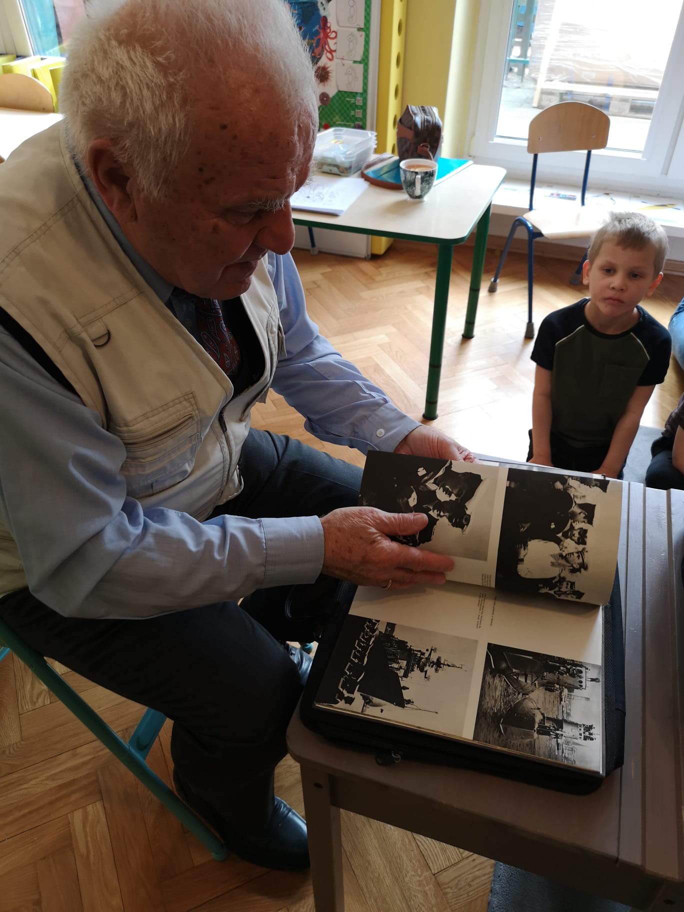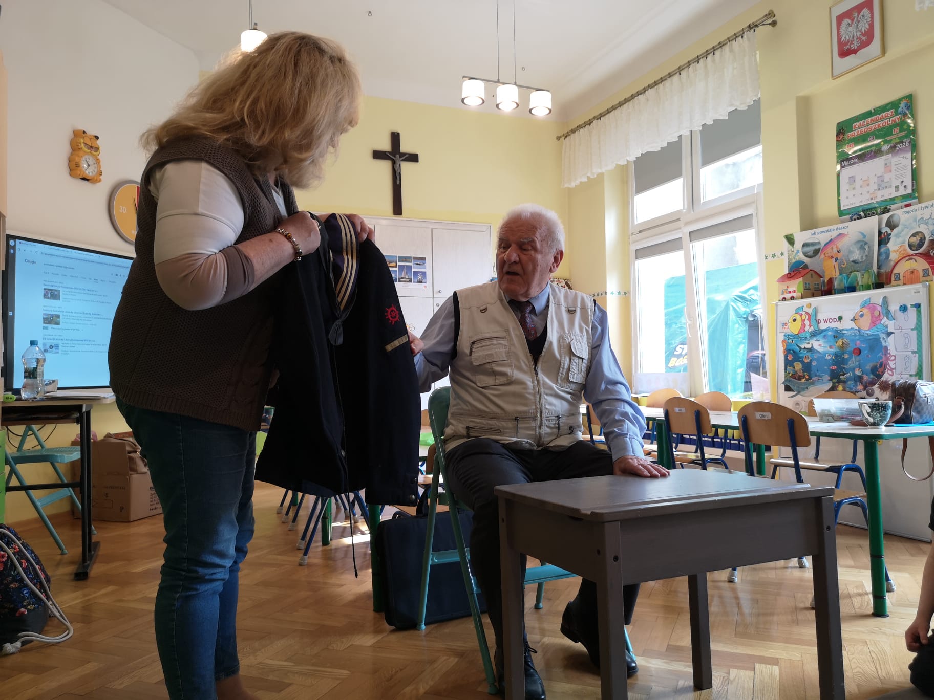 W grupie Starszaków najstarszy członek rodziny Kazia czyli Jego Dziadek – Pan Andrzej ,w środowy poranek 25 marca, dzielił się z dziećmi opowiadaniami o swojej przeszłości, pracy, o służbie w Polskiej Marynarce.