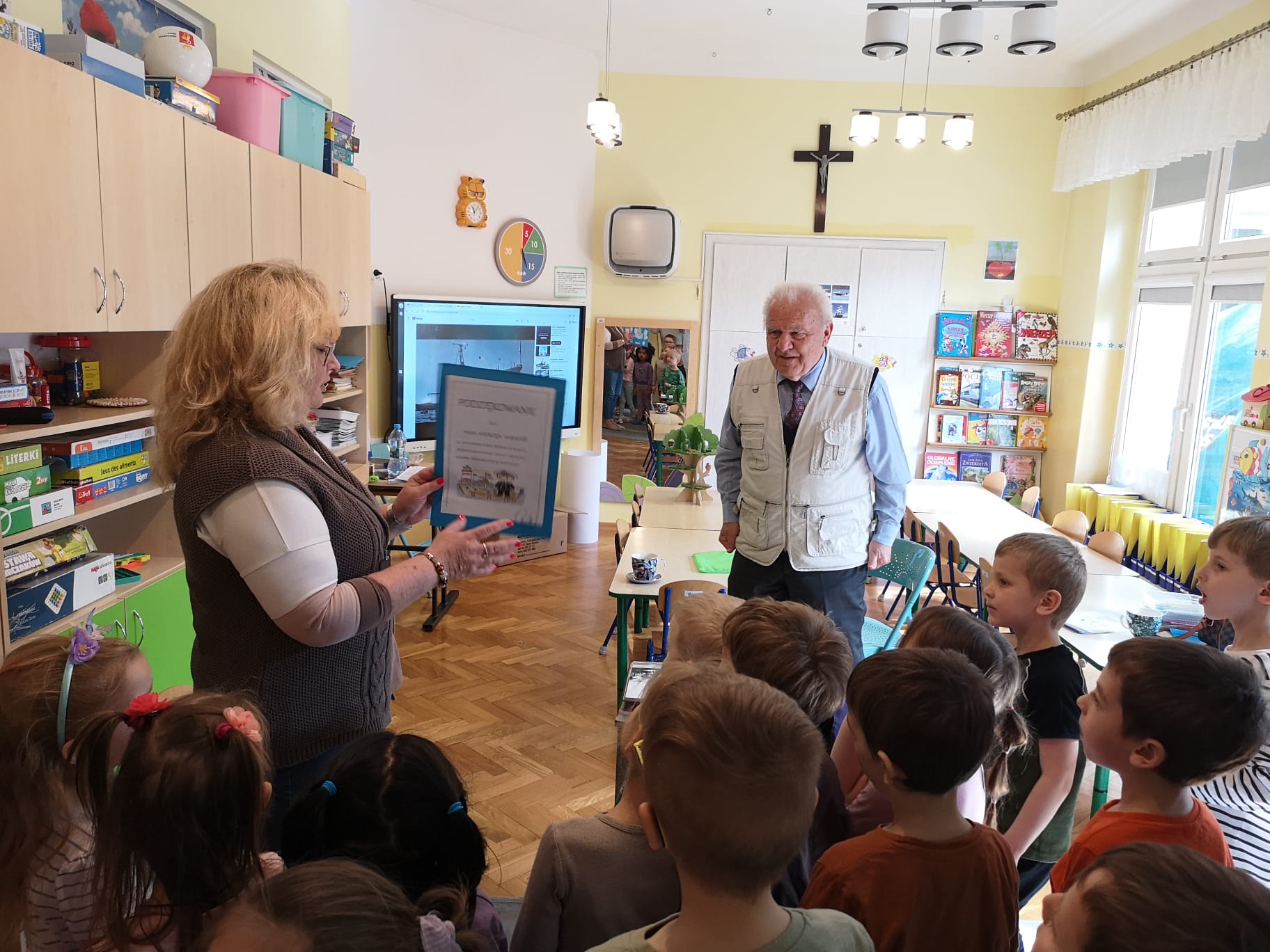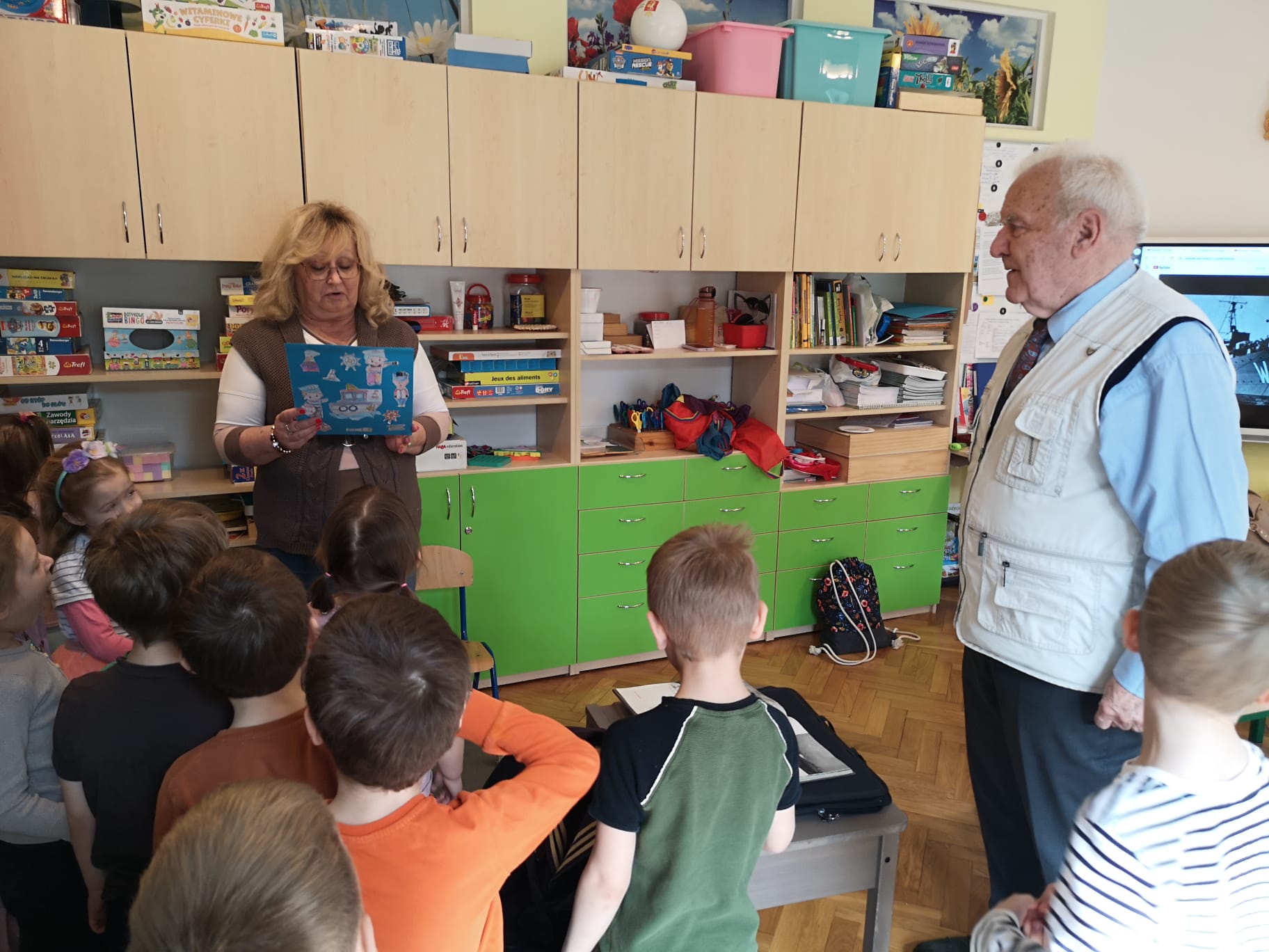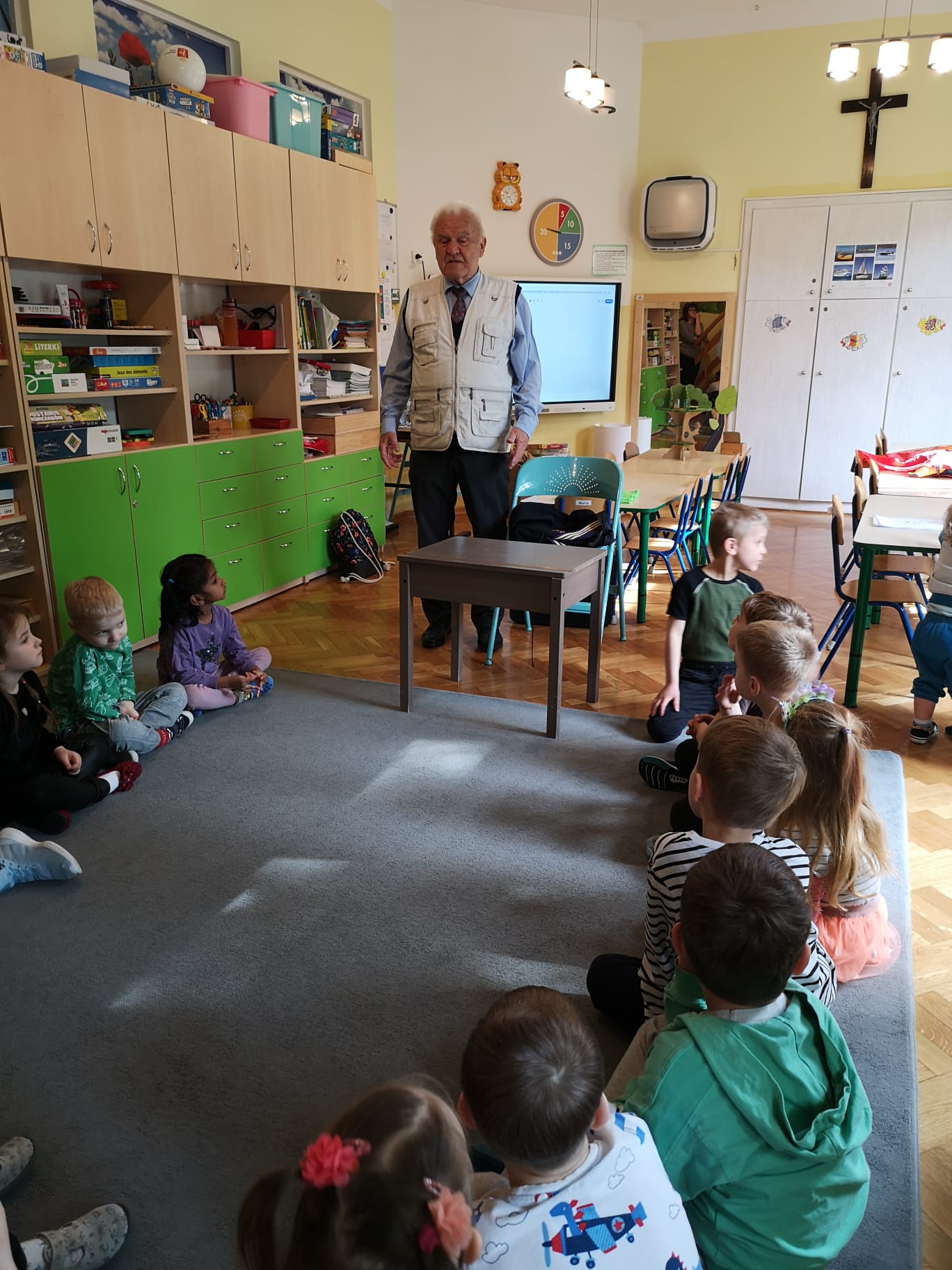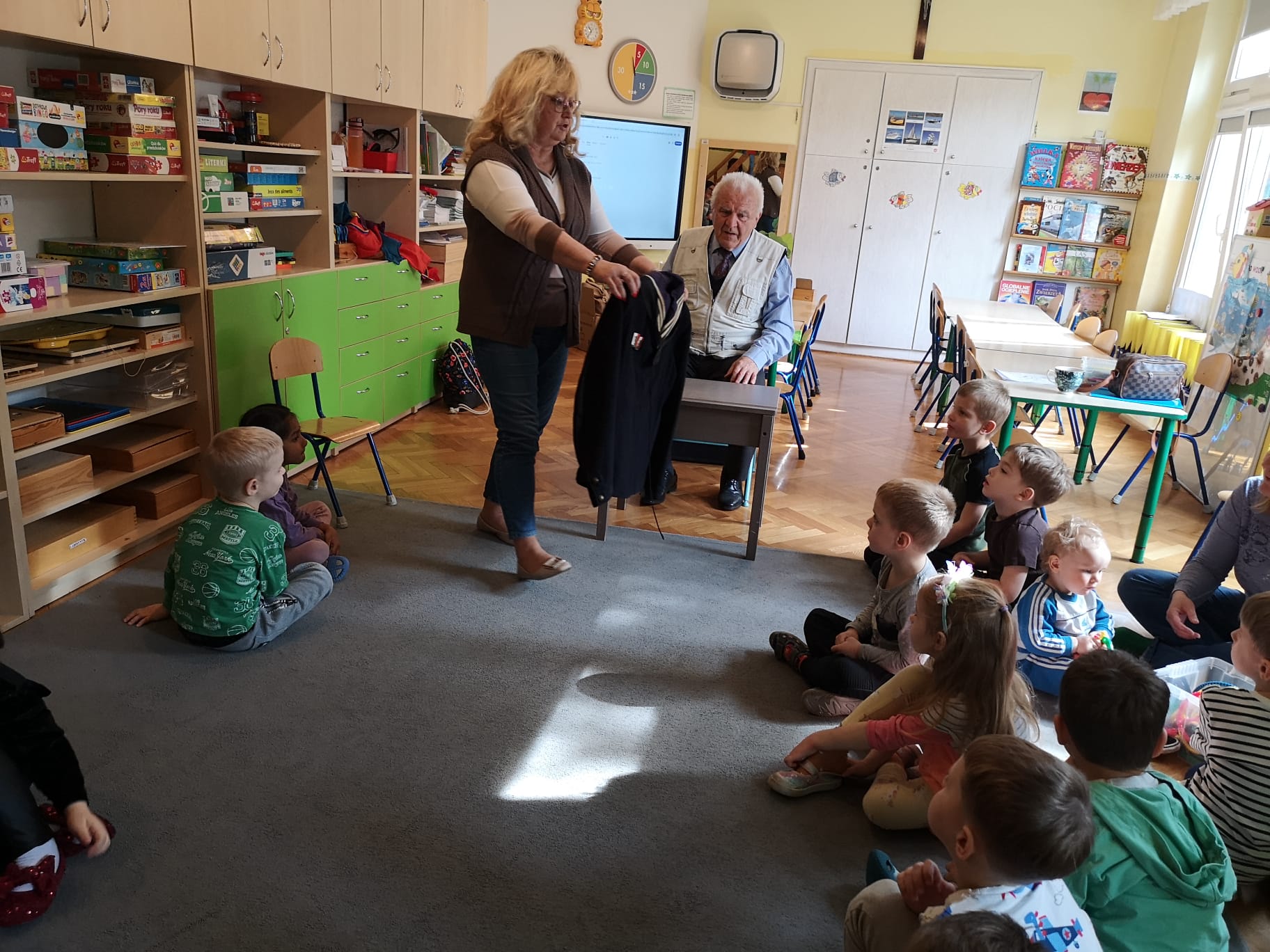 W grupie Starszaków najstarszy członek rodziny Kazia czyli Jego Dziadek – Pan Andrzej ,w środowy poranek 25 marca, dzielił się z dziećmi opowiadaniami o swojej przeszłości, pracy, o służbie w Polskiej Marynarce.