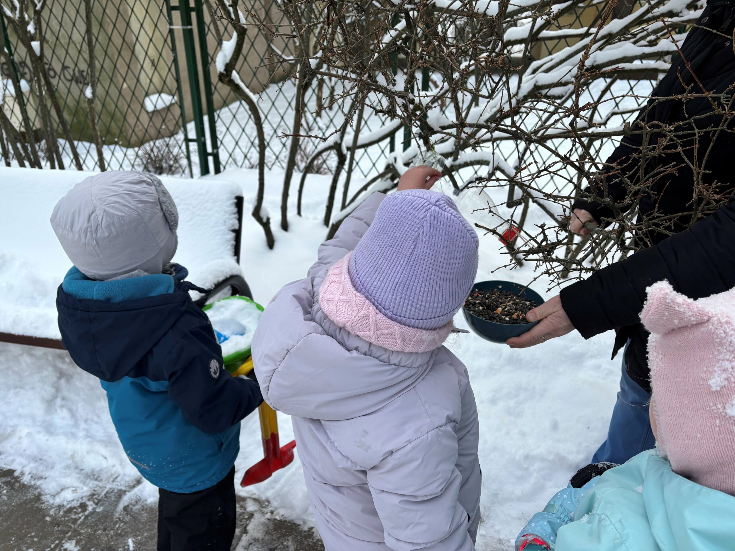 Zima to trudny czas dla skrzydlatych przyjaciół, dlatego nasze przedszkolaki z wielkim zapałem dbają o to, by w karmnikach nigdy nie zabrakło smakołyków. Dzieci ruszają do ogrodu, by pełnić rolę opiekunów przyrody. To dla nich nie tylko wielka radość, ale przede wszystkim nauka odpowiedzialności i szacunku do otaczającego świata. Potem z zainteresowaniem patrzą w przedszkolne okna i obserwują kolorowe sikorki i wróble, które z wdzięczności za gościnę i pomoc radośnie ćwierkają na gałęziach.