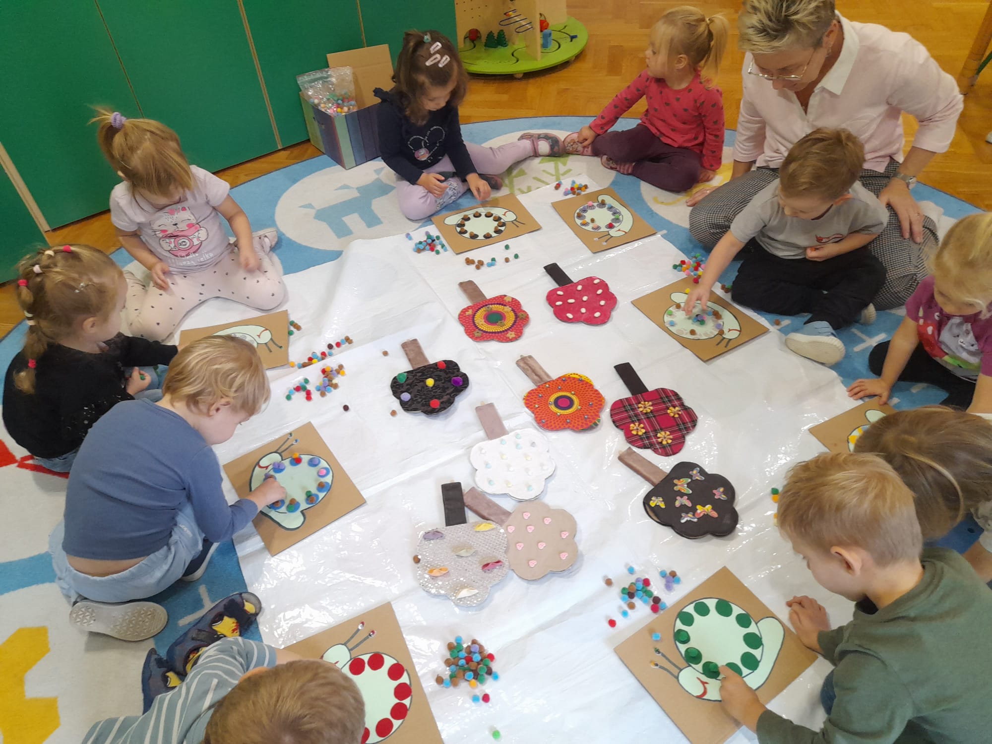 W najmłodszej grupie – ku radości dzieci-cały czas dzieje się coś ciekawego. Nawet matematyka okazała się być niezwykła i wciągająca dzięki nietypowym rekwizytom. Podczas zajęć wykorzystano różnorodne materiały sensoryczne (np. kolorowe guziki, kulki, makaron).Maluszki grupowały elementy wg. kolorów i kształtów, przeliczały, porównywały ilość. Zajęcia sprzyjały rozwijaniu spostrzegawczości, koordynacji wzrokowo- ruchowej oraz logicznego myślenia. Nauka przez zabawę przebiegała w radosnej i aktywnej atmosferze – bez nudy:)