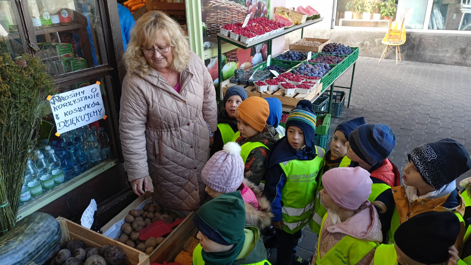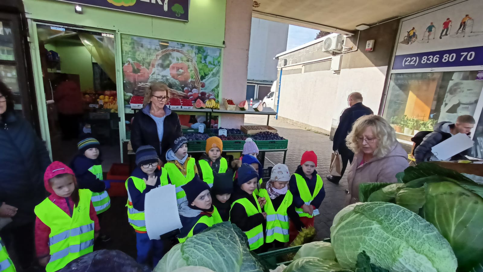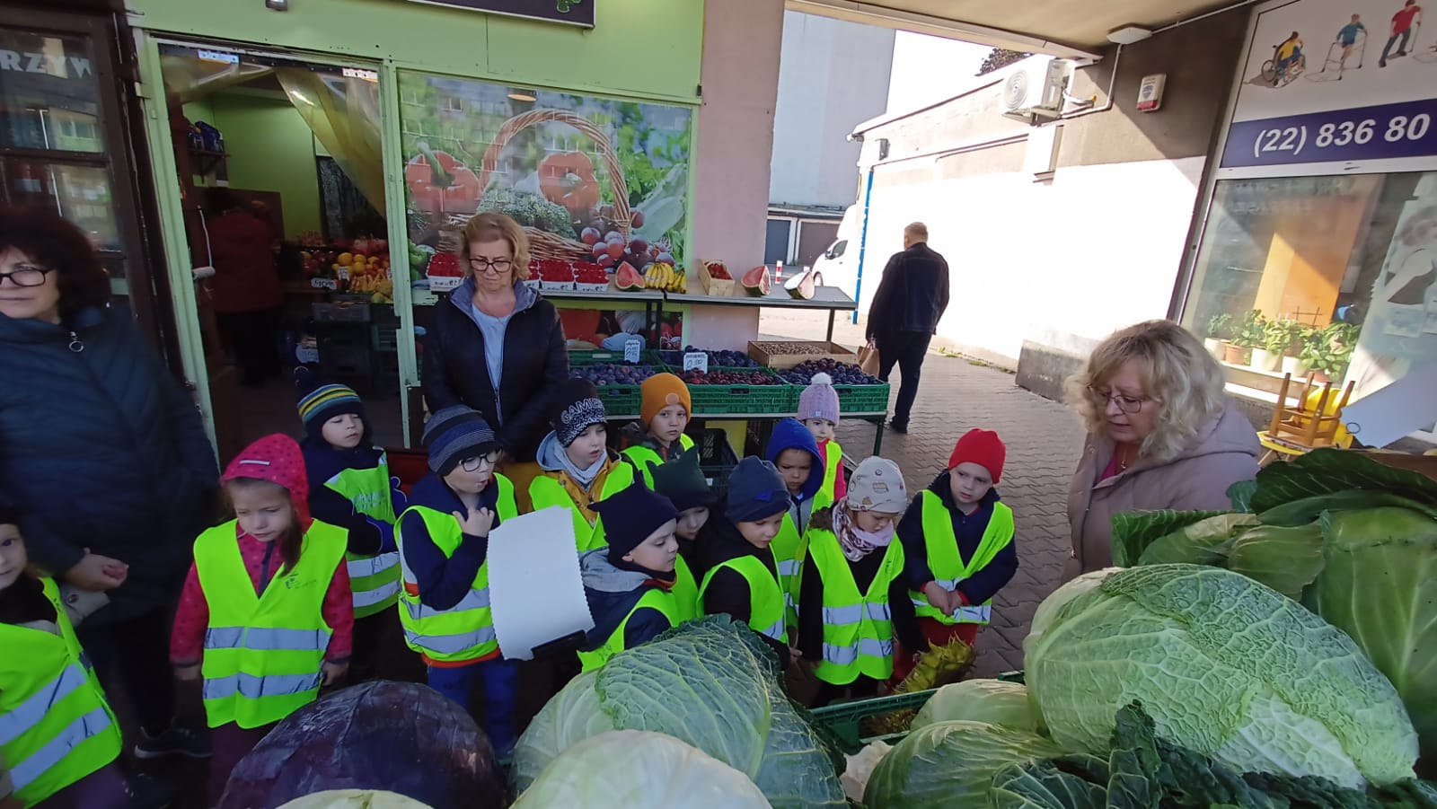 W środę 1 października grupa Starszaków wybrała się do Warzywniaka na Woli. Dzieci dowiedziały się, że jest kilkanaście odmian jabłek i to ich jesienią kupuje się najwięcej. A na przykład cebula może być: biała, cukrowa, czerwona i dymka. Od tych nazw i kolorów kręciło się w głowie. Przedszkolaki bardzo dziękują sympatycznej pani z warzywniaka za ciekawą rozmowę i pyszne jabłka, z których zrobią wspólnie smakowity kompot.