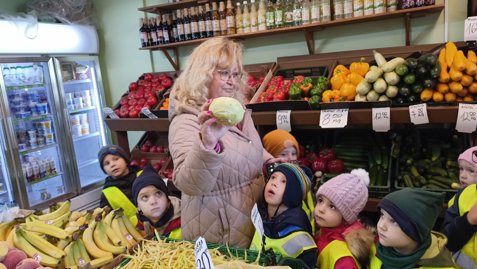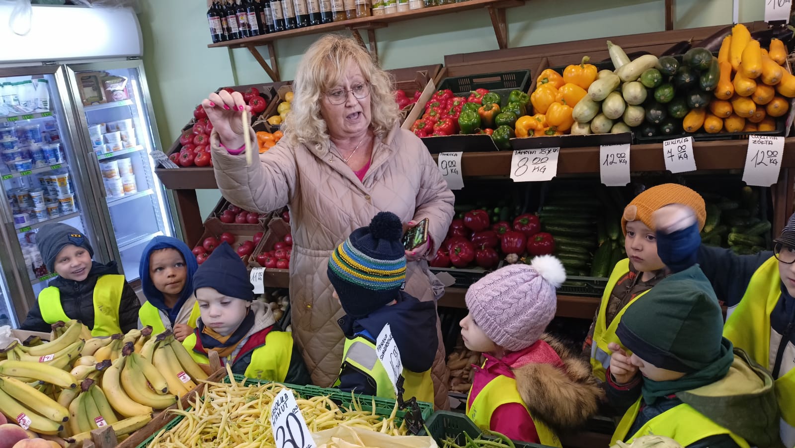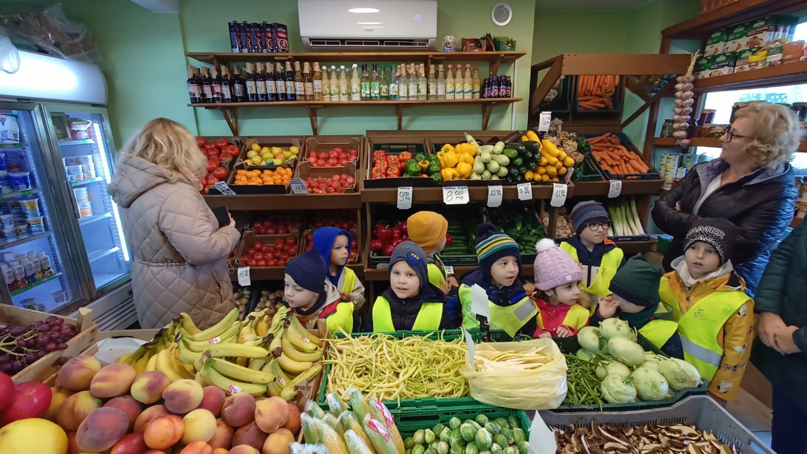 W środę 1 października grupa Starszaków wybrała się do Warzywniaka na Woli. Dzieci dowiedziały się, że jest kilkanaście odmian jabłek i to ich jesienią kupuje się najwięcej. A na przykład cebula może być: biała, cukrowa, czerwona i dymka. Od tych nazw i kolorów kręciło się w głowie. Przedszkolaki bardzo dziękują sympatycznej pani z warzywniaka za ciekawą rozmowę i pyszne jabłka, z których zrobią wspólnie smakowity kompot.