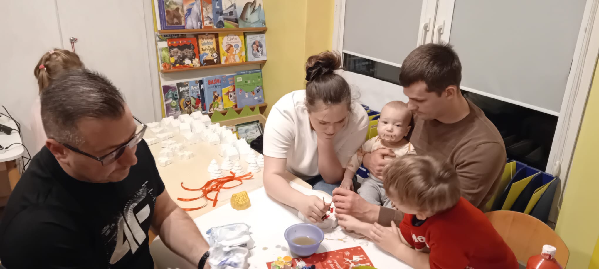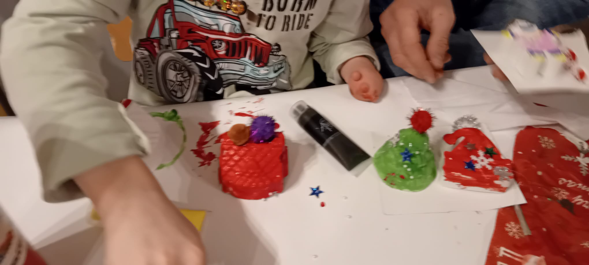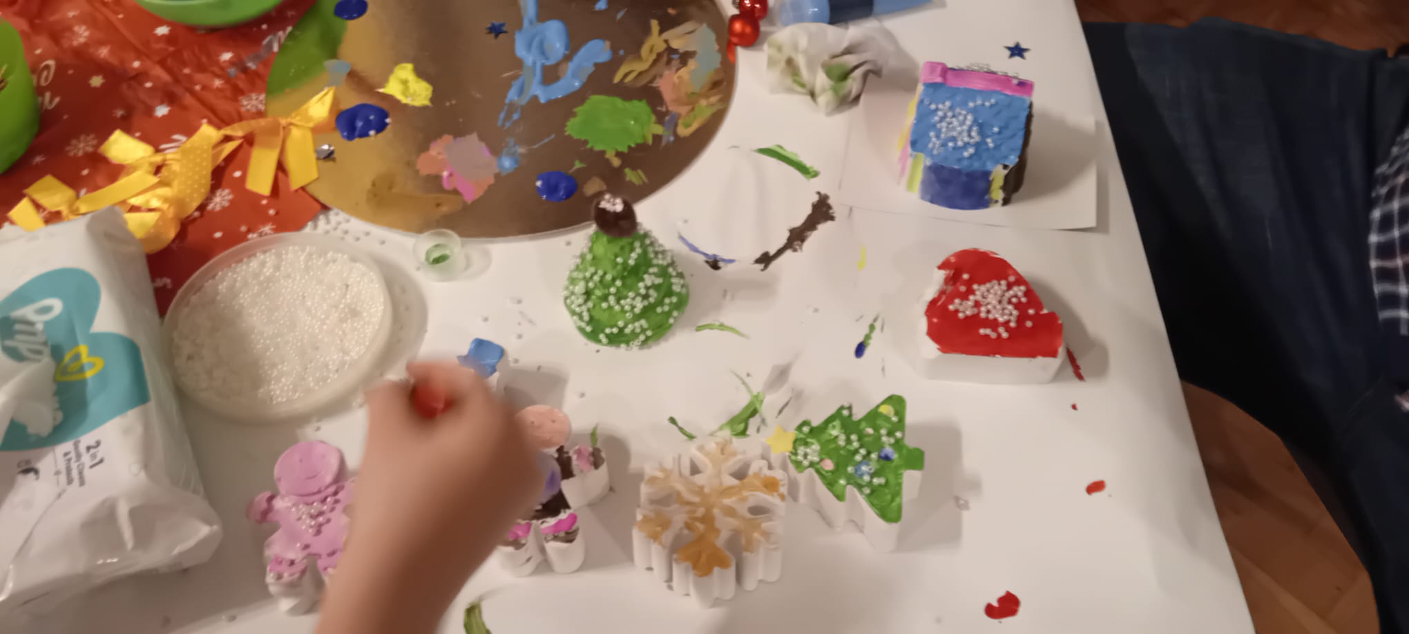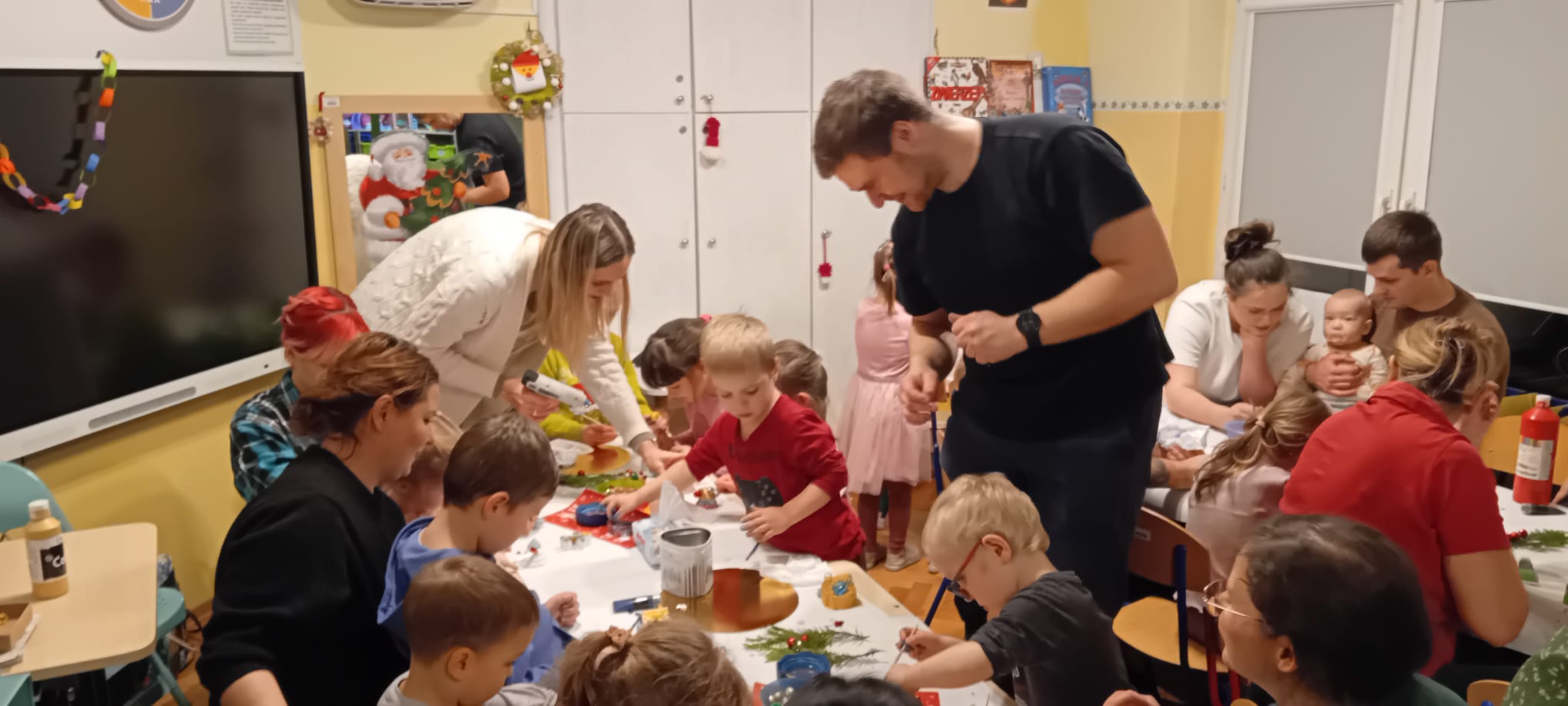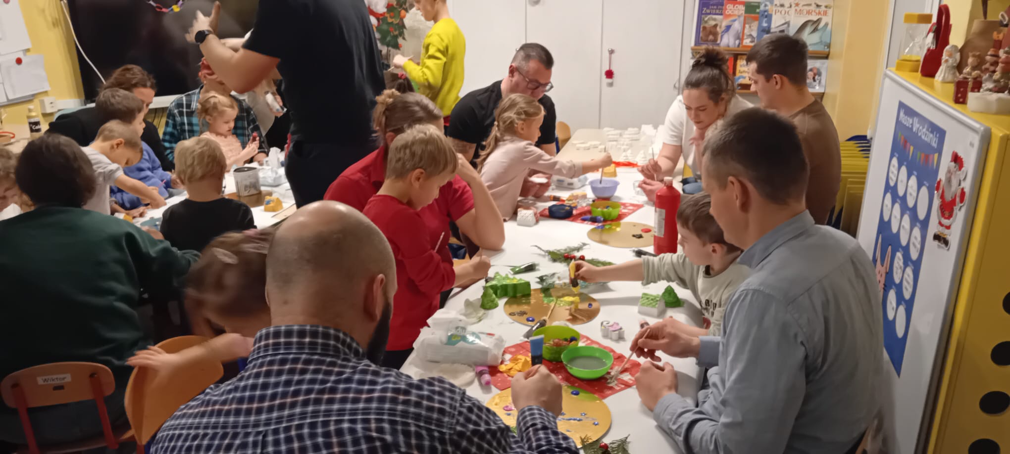 16 grudnia po południu salę najstarszej grupy wypełnił gwar dorosłych i dziecięcych głosów oraz melodie najpiękniejszych kolęd. Wszystko to za sprawą rodzinnych warsztatów pt.”Świąteczne cudeńka z gipsu”, które zorganizowały nauczycielki z grupy 3, by wprowadzić Starszakowe Rodzinki w nastrój zbliżającego się Bożego Narodzenia. Frekwencja bardzo dopisała, a zapał do pracy i inwencja twórcza były naprawdę godne podziwu:) Powstały prześliczne gipsowe arcydzieła, które na pewno pięknie ozdobią wnętrza domów naszych najstarszych Przedszkolaków. Wszyscy wyszli z warsztatów usatysfakcjonowani i we wspaniałych nastrojach! To było niezwykle miłe i radosne spotkanie:)