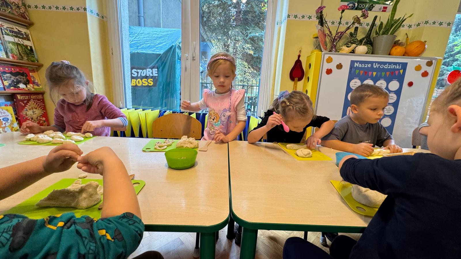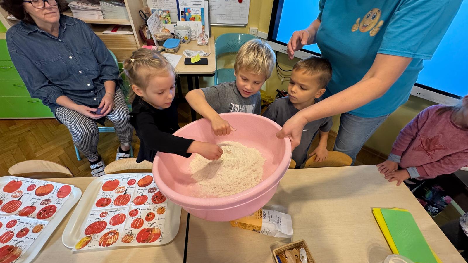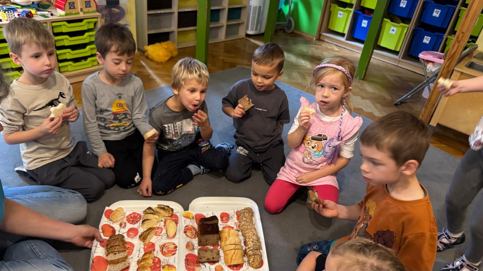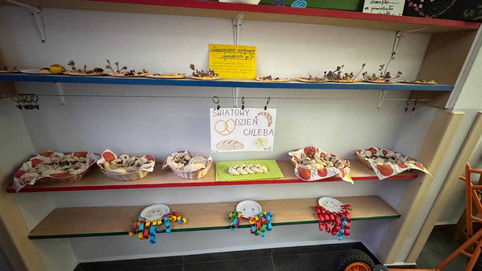 Starszaki zajadające się na co dzień z apetytem kanapkami z różnego rodzaju chleba, kajzerkami czy chałeczką , którą uwielbiają jeść na podwieczorek , z entuzjazmem przyjęły pomysł świętowania tego ważnego dnia:) Z uwagą obejrzały film edukacyjny „Od ziarenka do bochenka” dziwiąc się bardzo długiemu i trudnemu procesowi powstawania ich ulubionego pieczywa. Próbowały różnorodne wypieki, a także – jako Małe Piekarczyki – stworzyły z masy solnej z dodatkami przepiękne: chlebki, bułeczki, rogaliki czy paluchy:) Na koniec postanowiły, że niedługo spróbują zrobić samodzielnie już takie prawdziwe wypieki – do zjedzenia. Kto wie, czy tak nie zaczynali znani mistrzowie piekarniczego rzemiosła?:)
