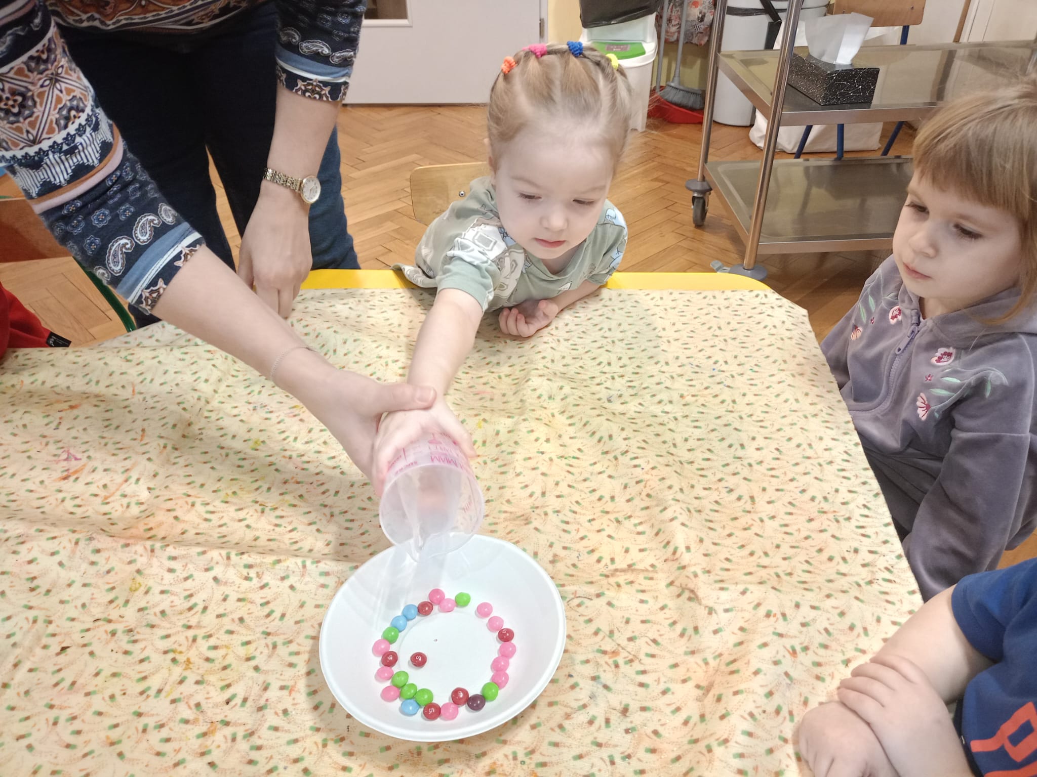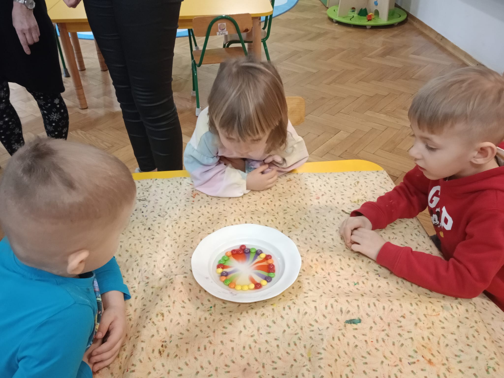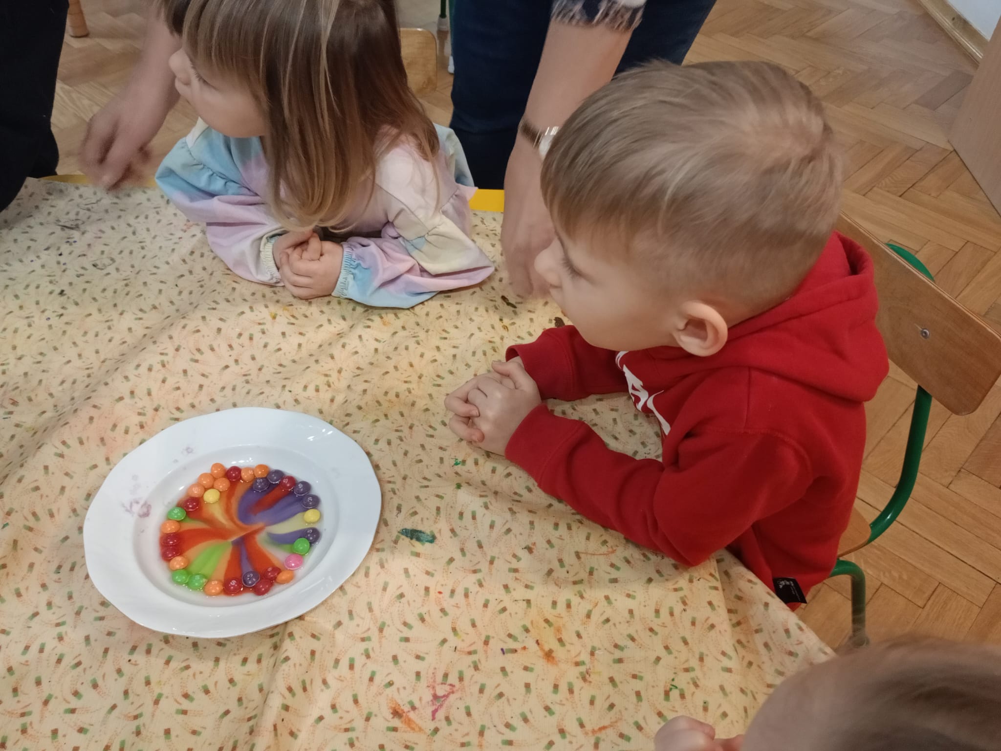 ✨ Przeprowadziły eksperyment z cukierkami Skittles – na talerzykach powstała przepiękna, kolorowa tęcza.