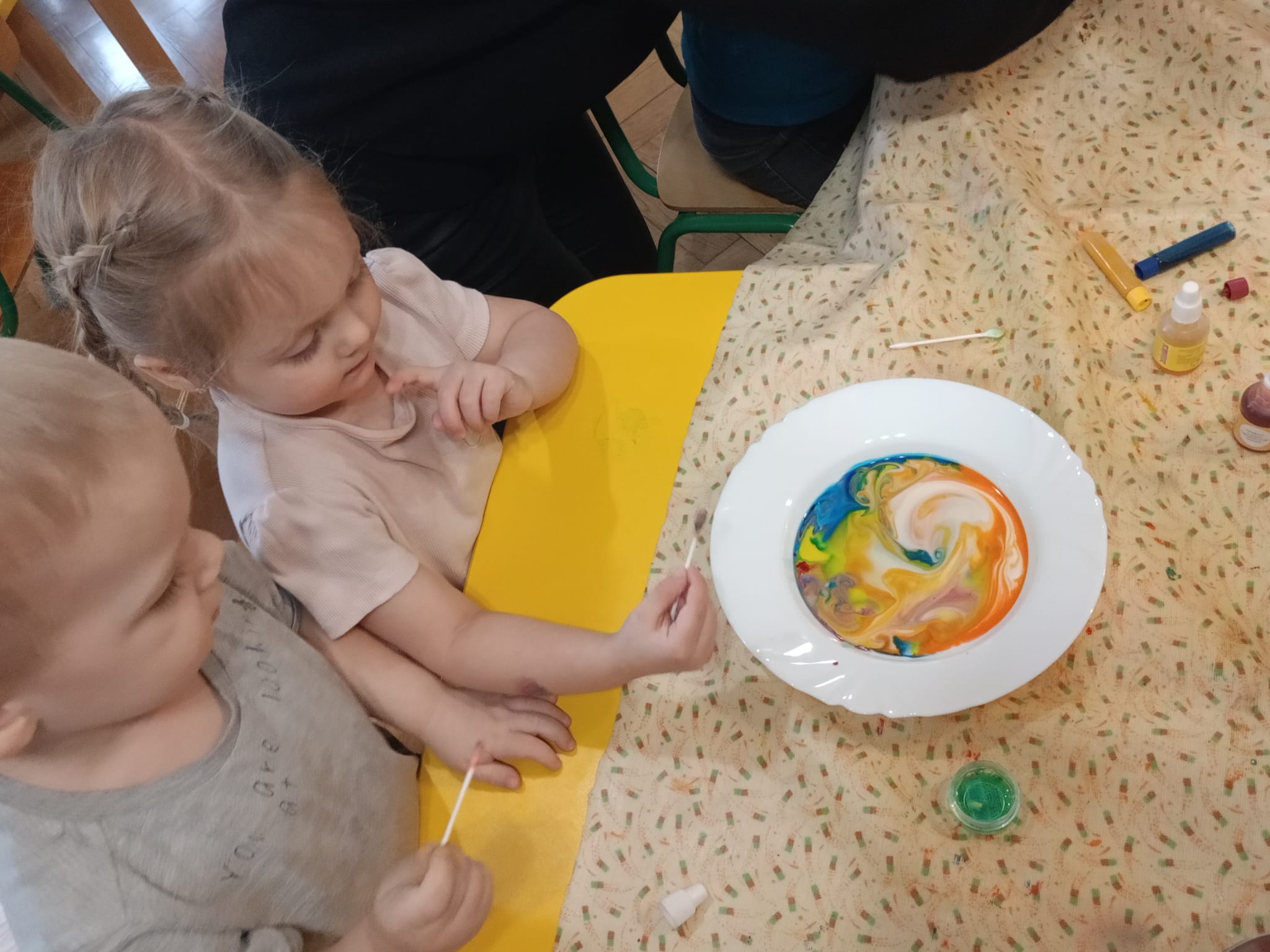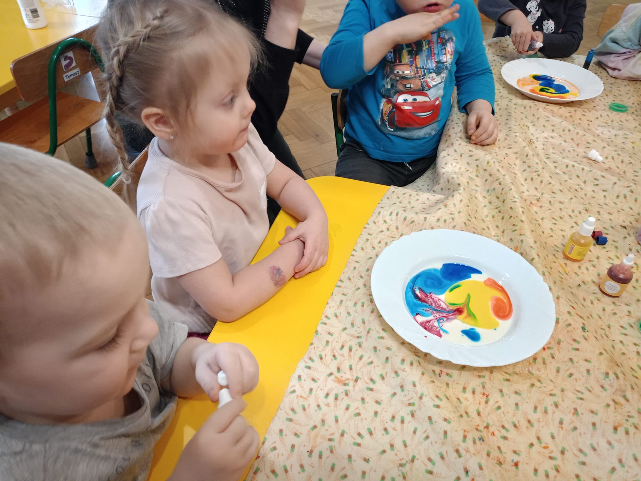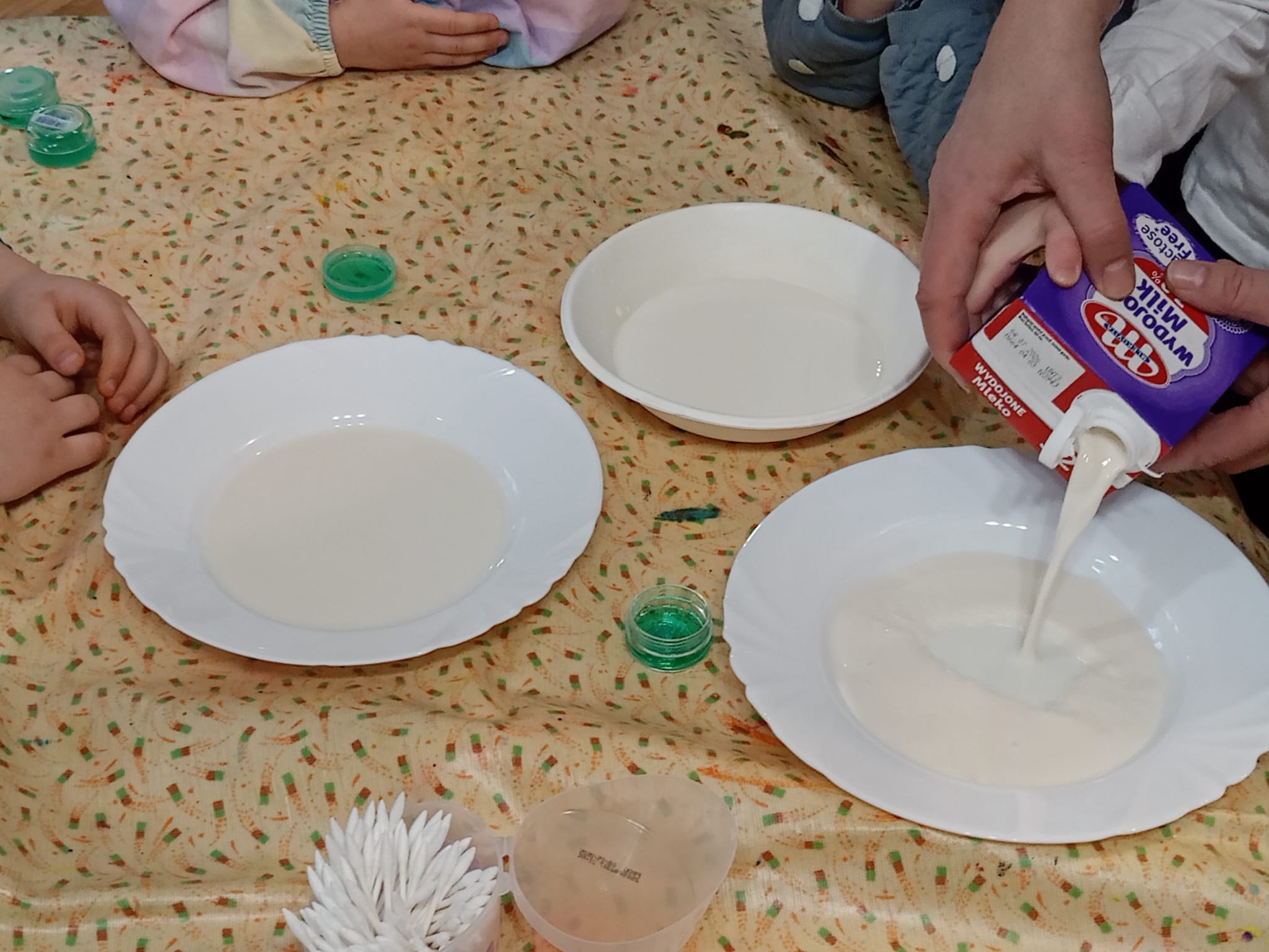 🎨 Dowiedziały się, jak malować obrazy barwnikami spożywczymi na mleku.