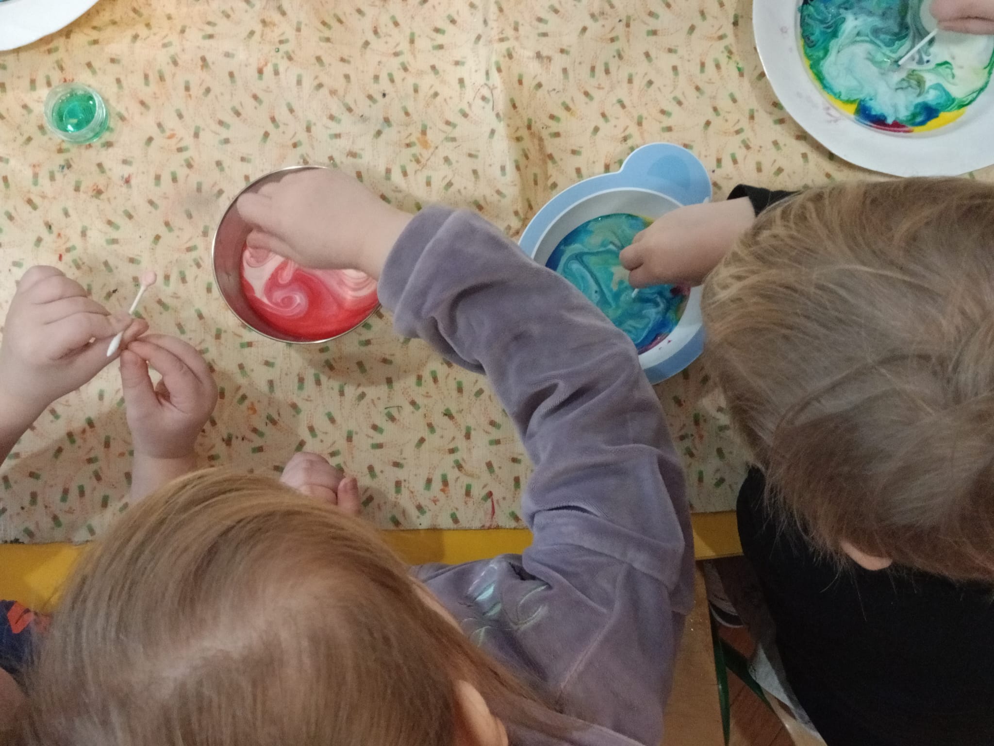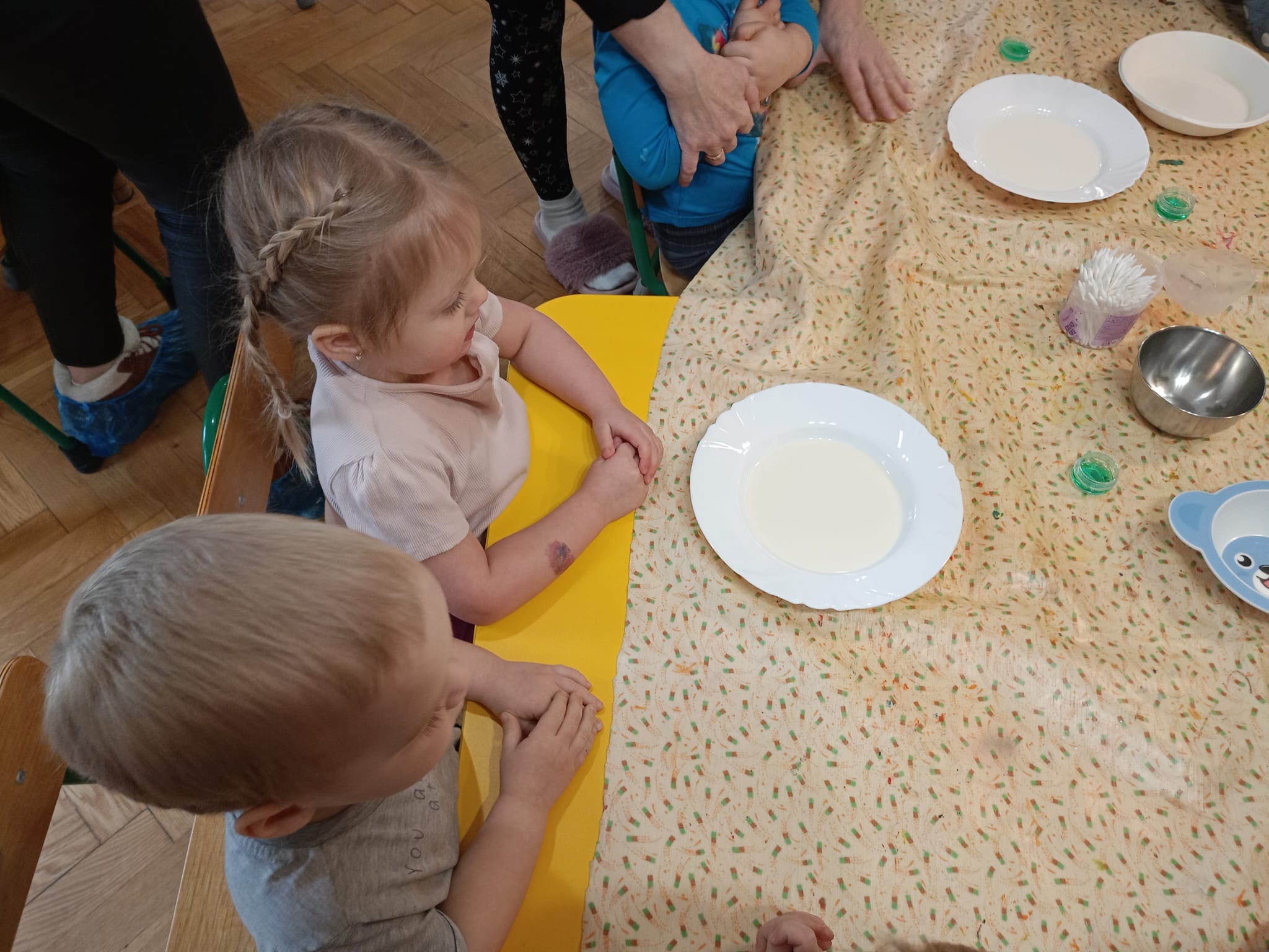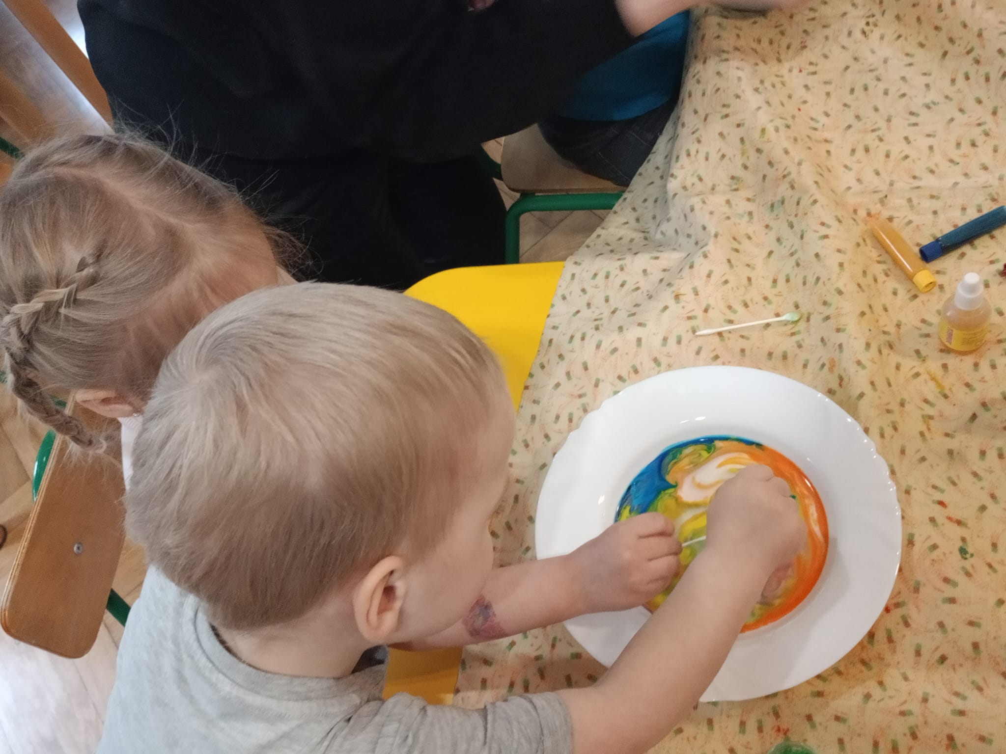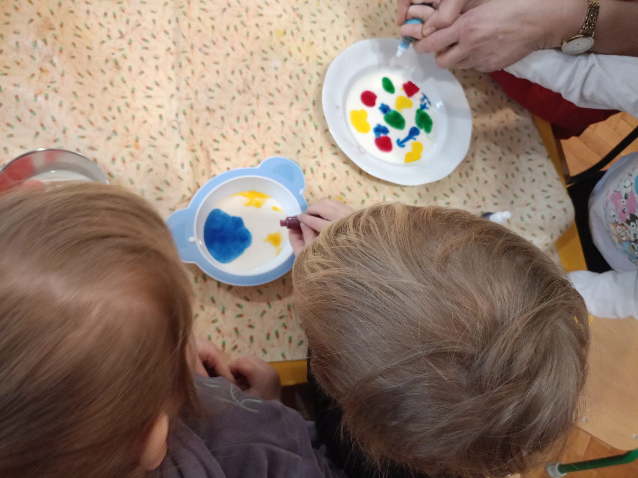 🎨 Dowiedziały się, jak malować obrazy barwnikami spożywczymi na mleku.