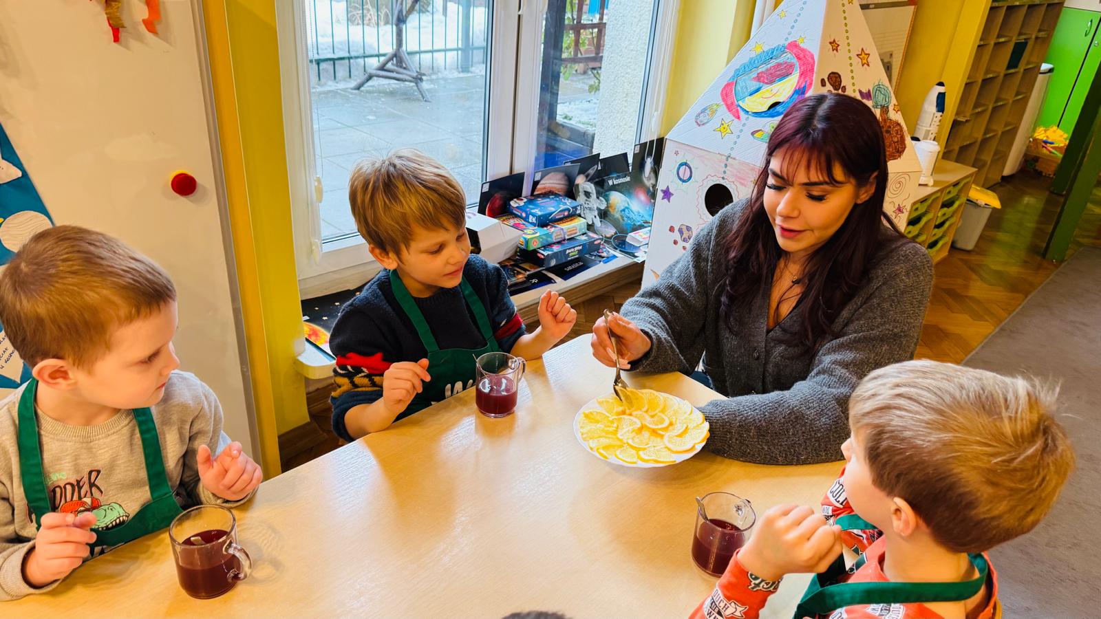 Hu-hu-ha, hu-hu-ha, nasza zima zła! Ale czy na pewno taka zła? Przedszkolaki z najstarszej grupy dowiedziały się, w jaki sposób można umilić sobie ten czas, ale przede wszystkim ogrzać się w mroźne dni. Przyrządziły smakowitą zimową herbatę z imbirem, goździkami, cytrusami i miodem. Degustowały suszone owoce, a także dzieliły produkty na zdrowe i niezdrowe. Bardzo dziękujemy Paniom Dietetyczkom za ciekawe i przepyszne zajęcia!